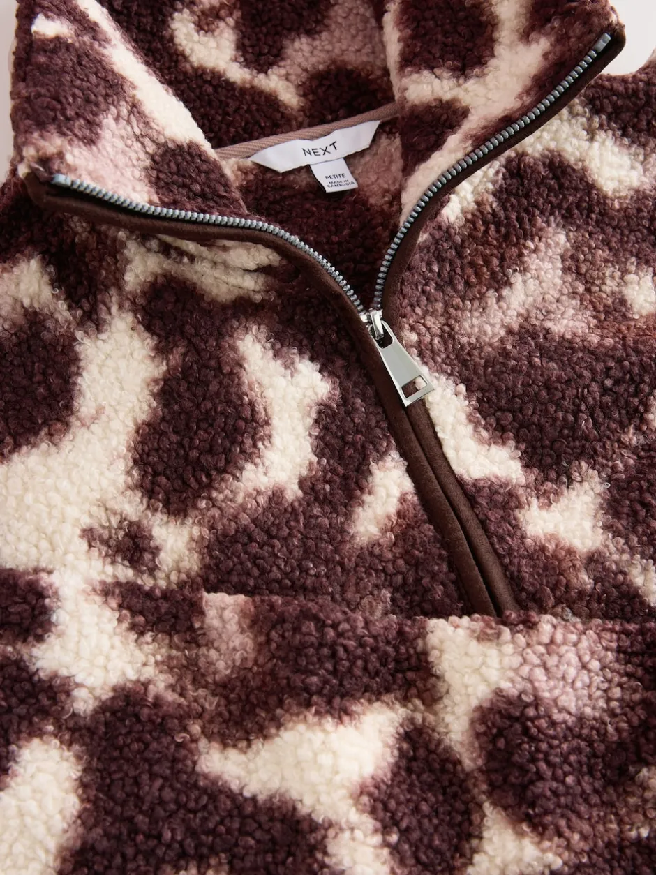 Next – Polaire douce en polaire en peau de mouton à col zippé Léopard MARRON CHOCOLAT/Rose Best