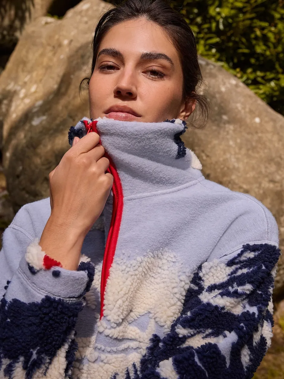 Next – Polaire douce en polaire en peau de mouton à col zippé Paysage d’hiver bleu à imprimé graphique New