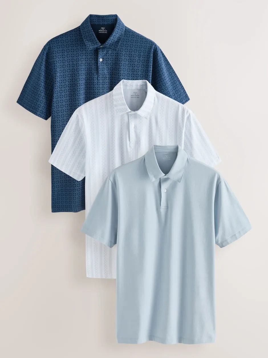 Next – Polo en jersey Manches courtes 3 Pack Bleu marine géométrique Best