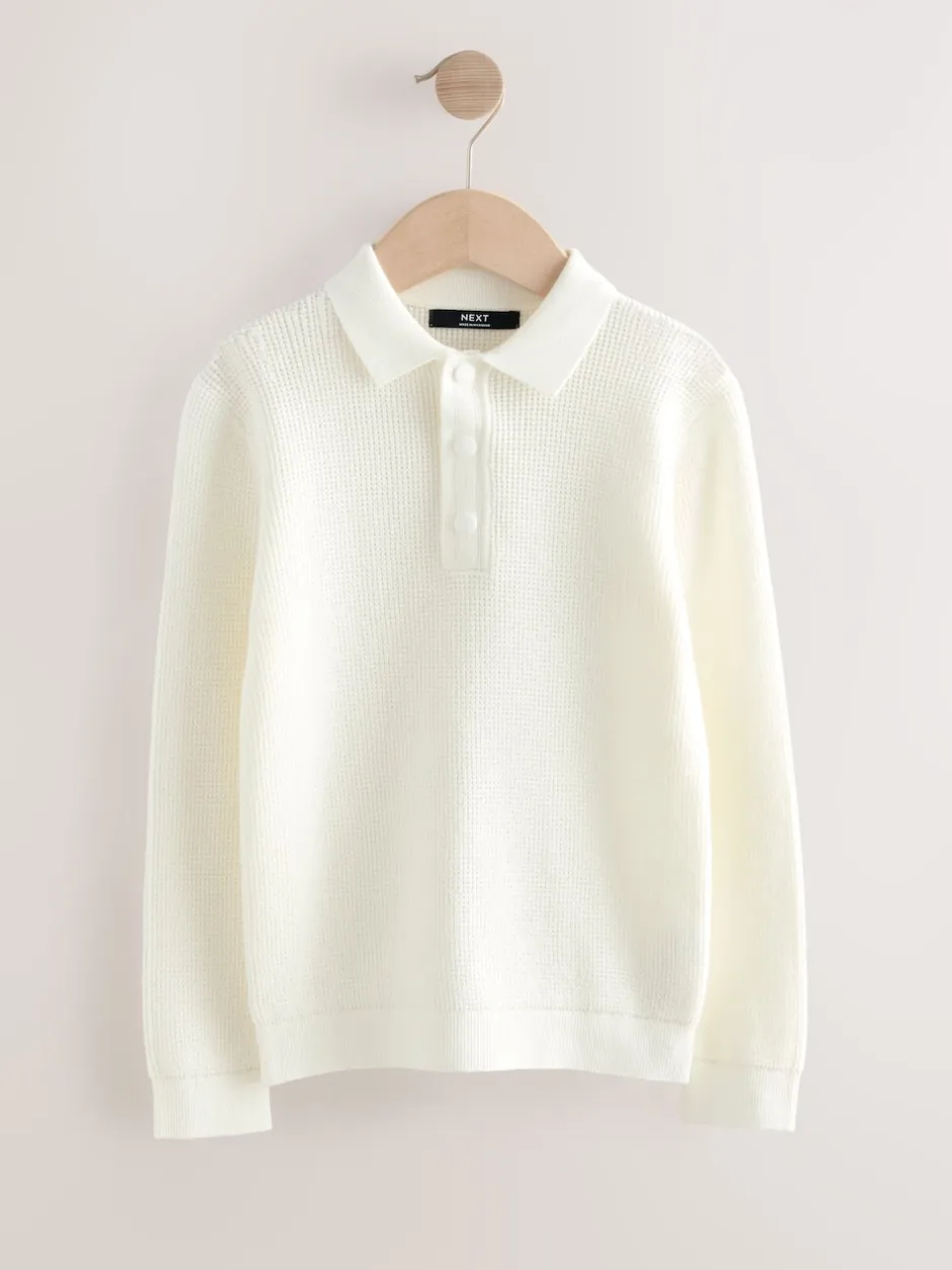 Next – Polo texturé à manches longues (3-16ans) Crème écru Online