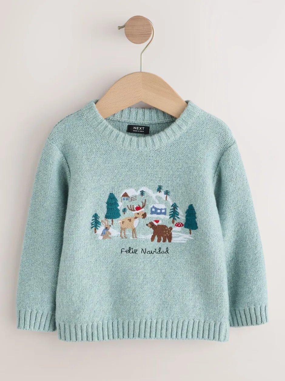 Next – Pull de Noël en maille (3 mois-7 ans) Bleu minéral Clearance