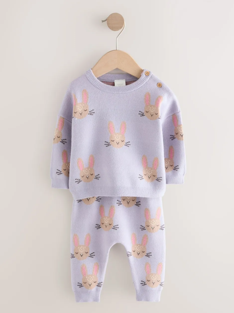 Next Purple Rabbit – Ensemble Pull et Leggings en maille Bébé 2 Pièces (0mois-2ans) Clearance