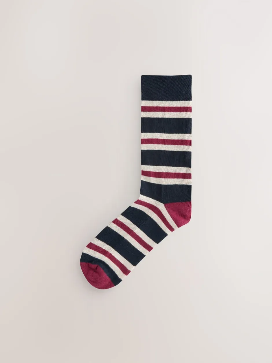 Next Rayé bleu/écru – Lot de 5 paires de chaussettes confortables à semelle rembourrée Best