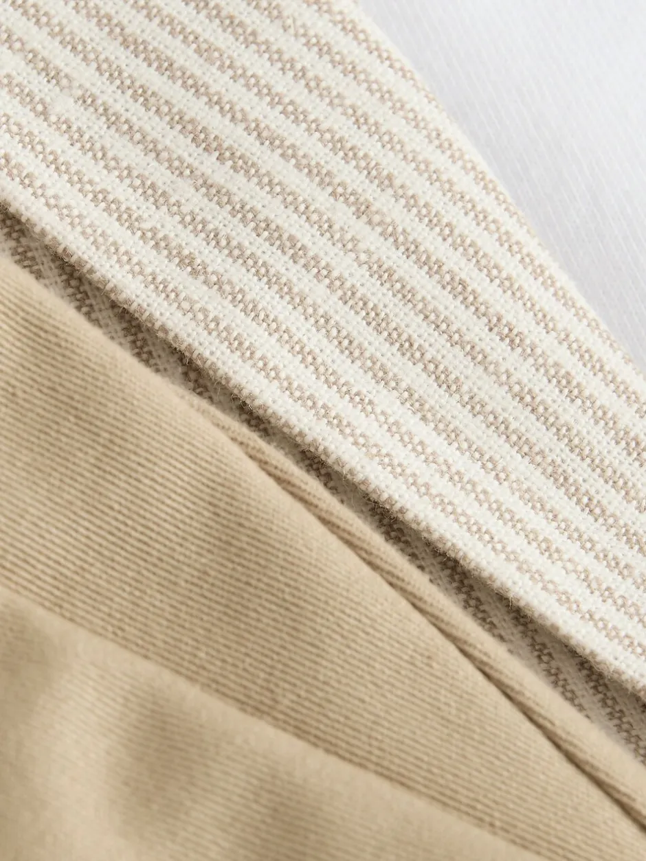 Veste principale 55% lin, 45% coton. Doublure : 100% polyester. T-shirt 100% coton. Short : 97% coton, 3% élasthanne.