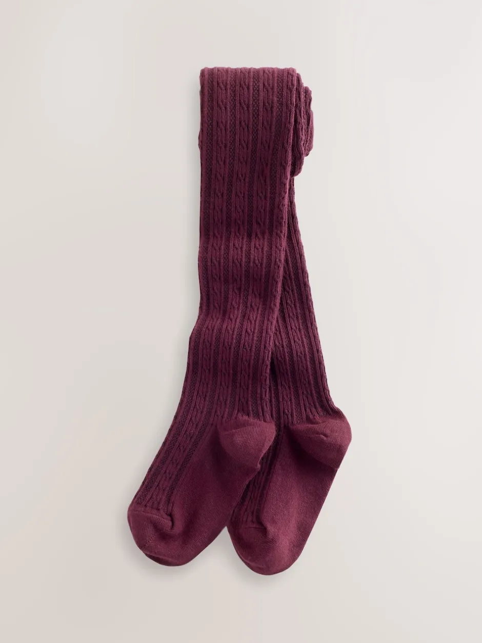 Next Rose baie rouge et marron chocolat – Lot de 3 collants en torsades de coton riche Online