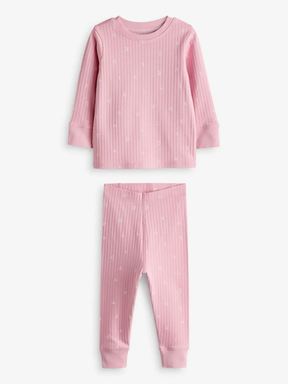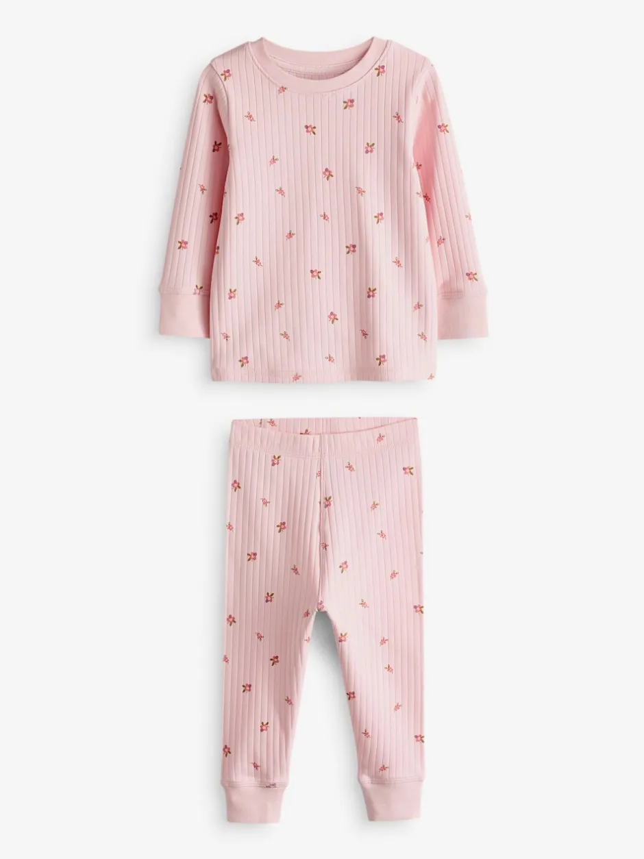 Next Rose/ Blanc Ditsy – Pyjama Rib Se blottir 3 Pack (9mois-12ans) Discount