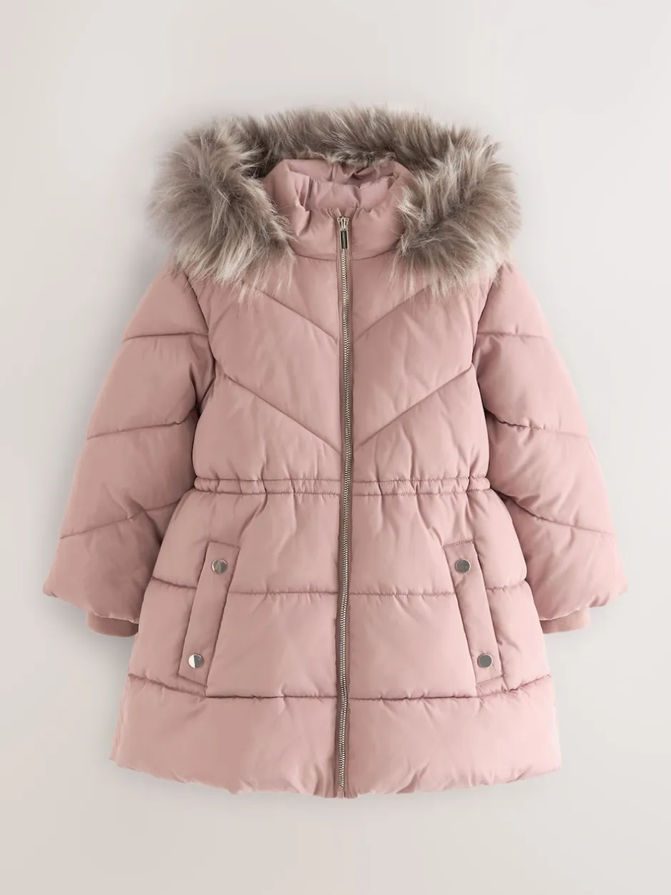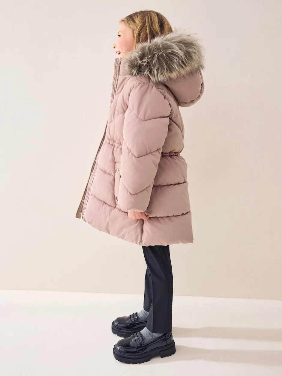Next Rose caramel – Manteau matelassé bordé de fausse fourrure Résistant à la douche (3-16ans) Online
