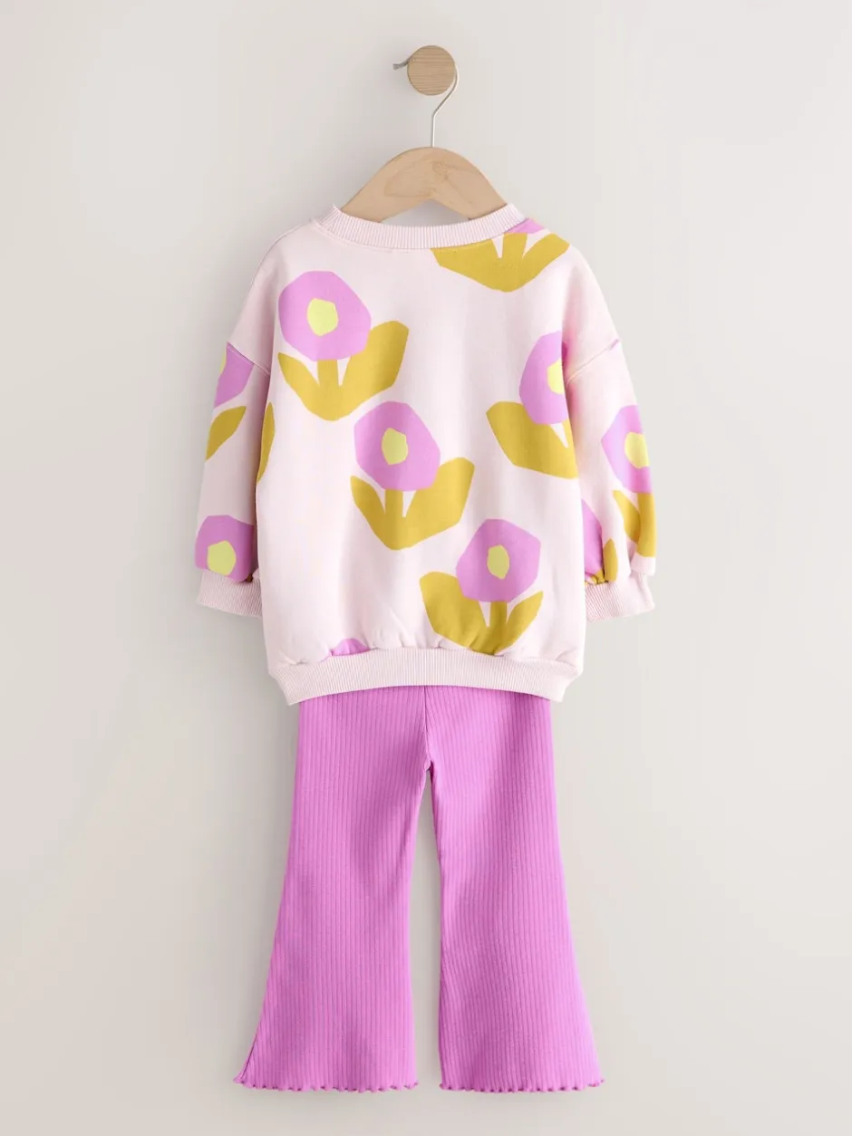 Next Rose clair à fleurs – Ensemble sweat et legging évasé (3mois-7ans) Best
