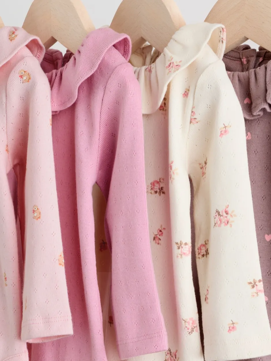 Next Rose / Crème / Marron Ditsy – Body à volants et manches longues bébé Lot de 4 (0mois2ans) Best