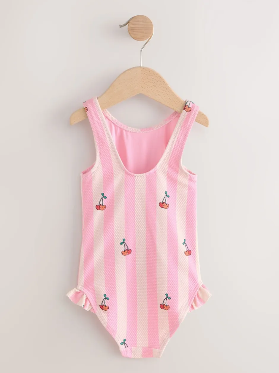 Next Rose rayé cerise – Maillot de bain à franges (3mths-7yrs) Hot