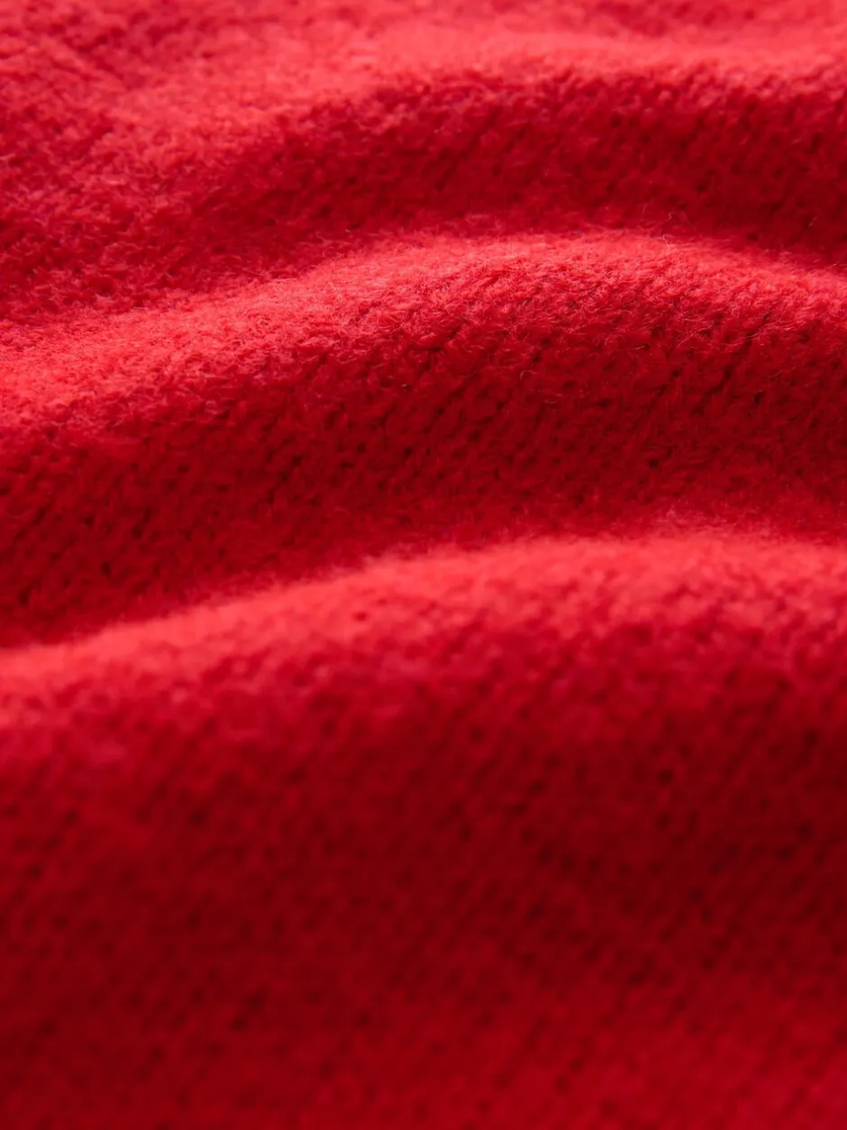 Lavable en machine. Tricot 52% Polyester recyclé, 37% Acrylique, 8% Laine, 3% Elasthanne. Tissée 100% coton.