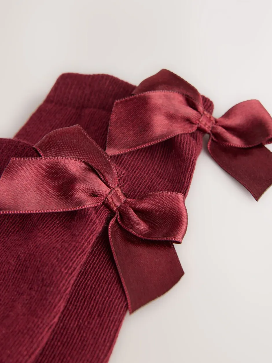Next Rouge bordeaux – 2 Chaussettes genoux riches Nœud en coton Lot Best