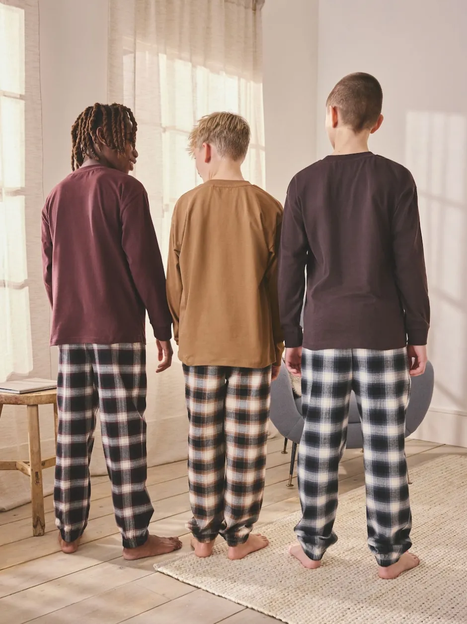 Next Rouge bordeaux/marron – Lot de 3 pyjamas tissés à carreaux (3-16ans) New