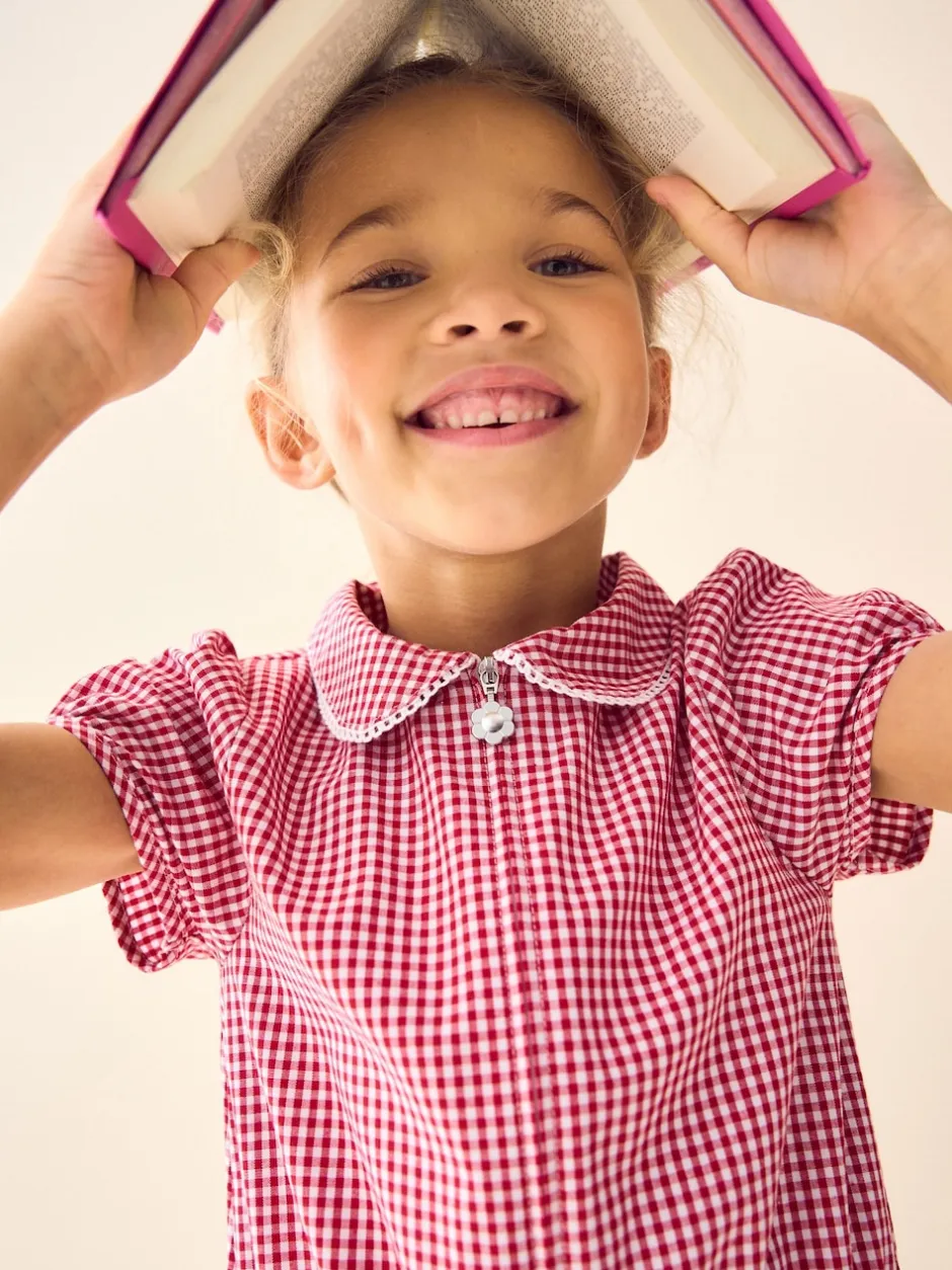 Next Rouge – Combinaison d’école Vichy en coton riche avec fermeture éclair (3-14ans) Clearance