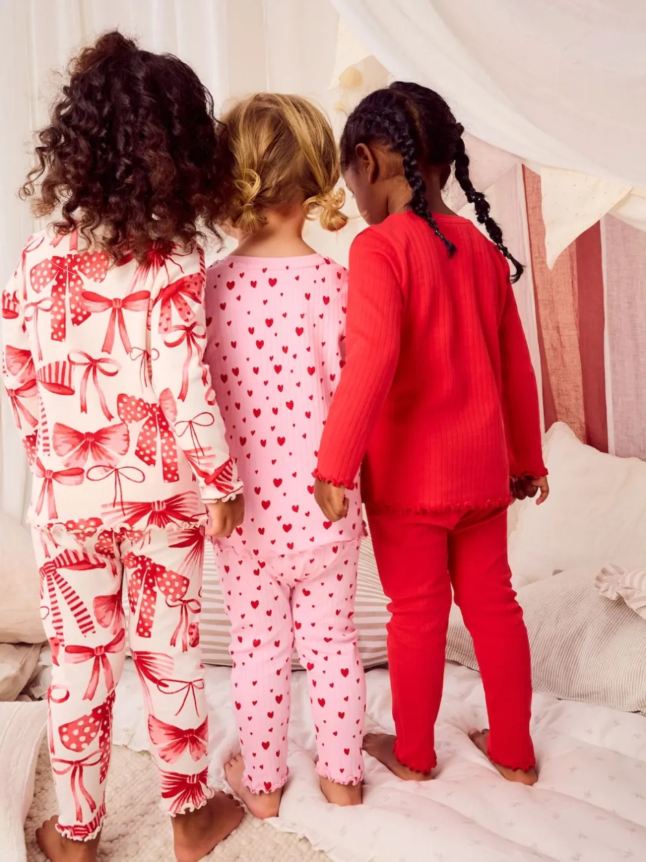 Next Rouge Nœud/ Cœur – Lot de 3 pyjamas Snuggle (9mois-16ans) Sale