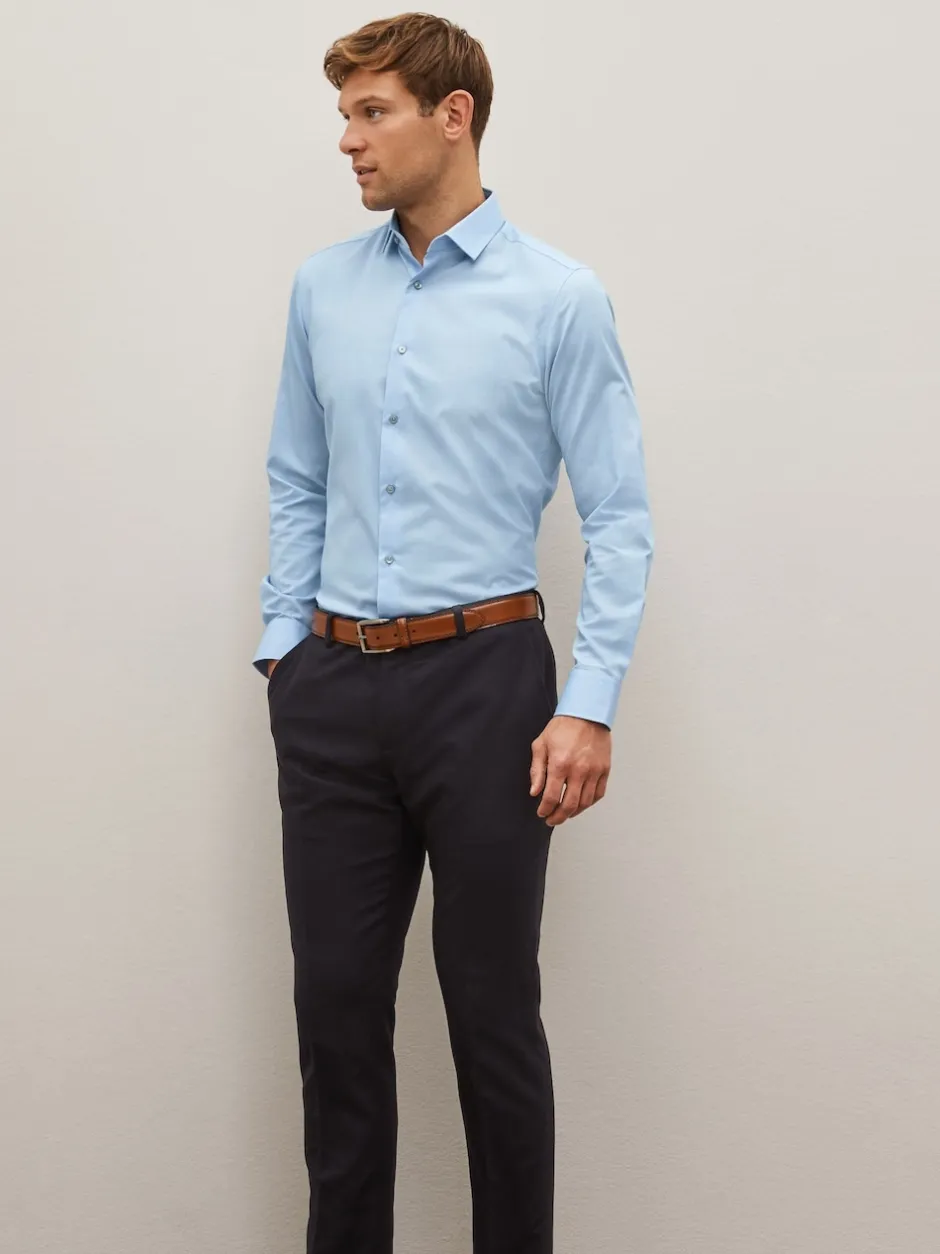 Next – Slim Fit (Slim Fit) – Chemise élégante texturée facile d’entretien à poignets simples Bleu