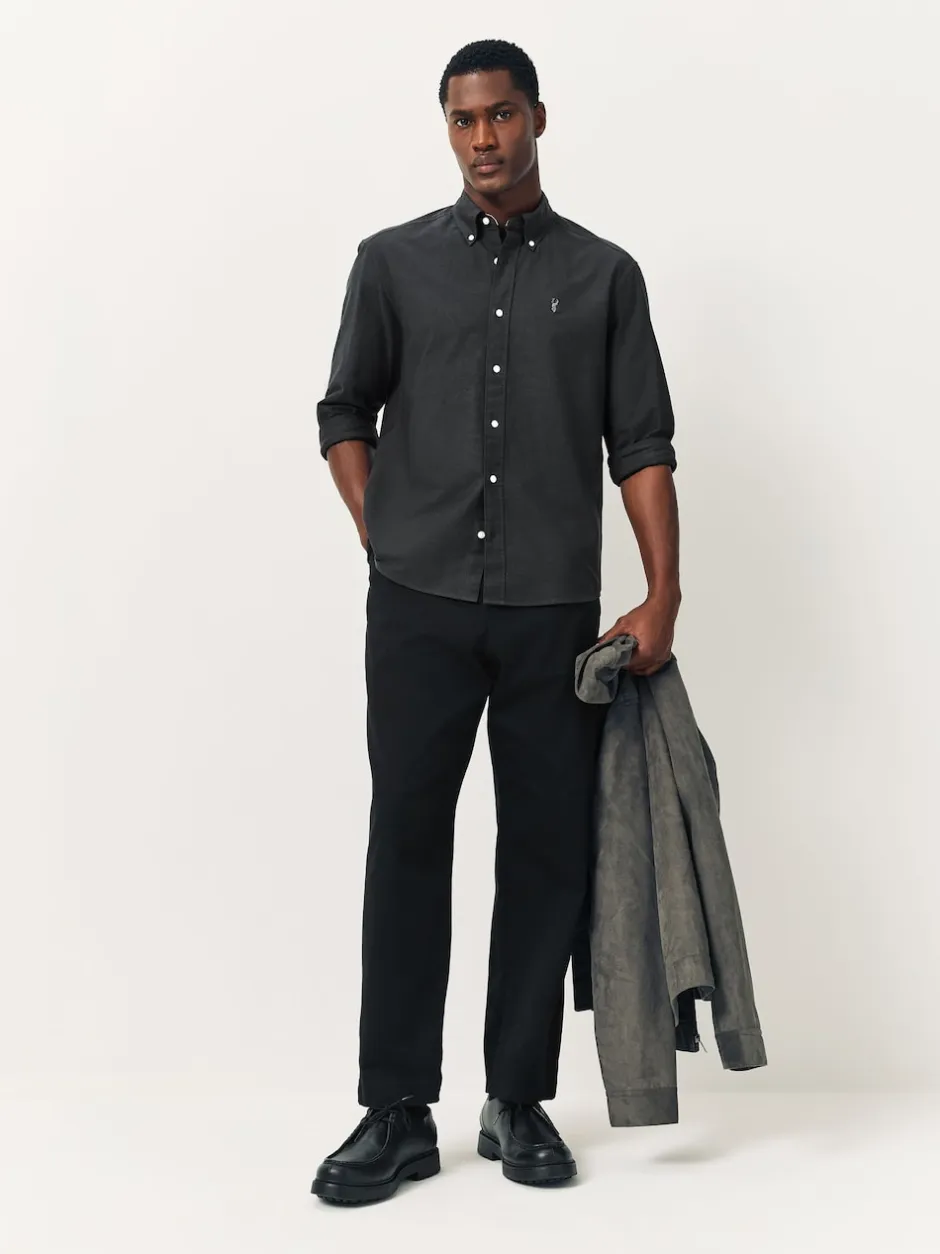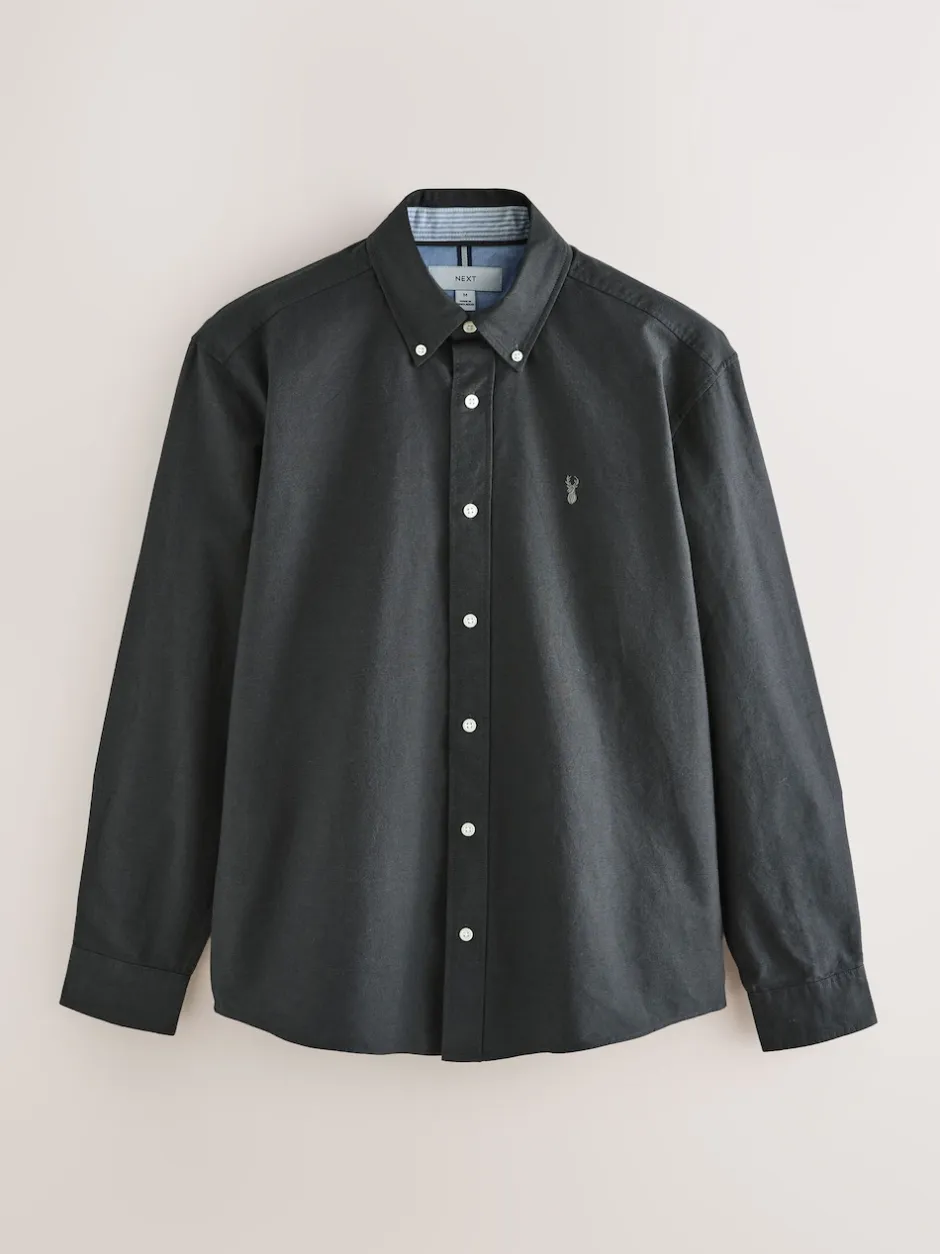 Next – Slim Fit (Slim Fit) – Chemise Oxford à manches longues Gris de charbon de bois New
