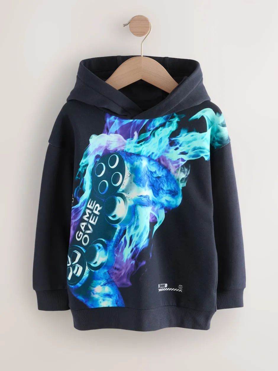 Next – Sweat à capuche adolescent imprimé graphique (3-16ans) Contrôleur bleu marine New