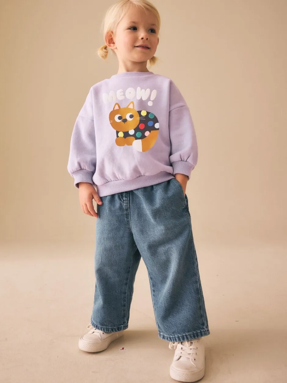 Next – Sweat à col ras du cou (3mths-7yrs) Chat à pois violet lilas Best