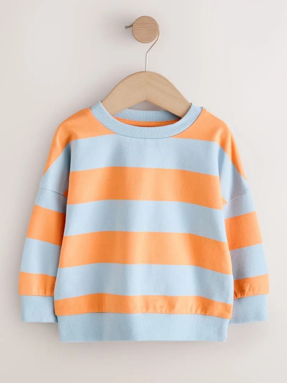 Next – Sweat imprimé All-over Col rond (3mois -7ans) Rayures orange et bleue New