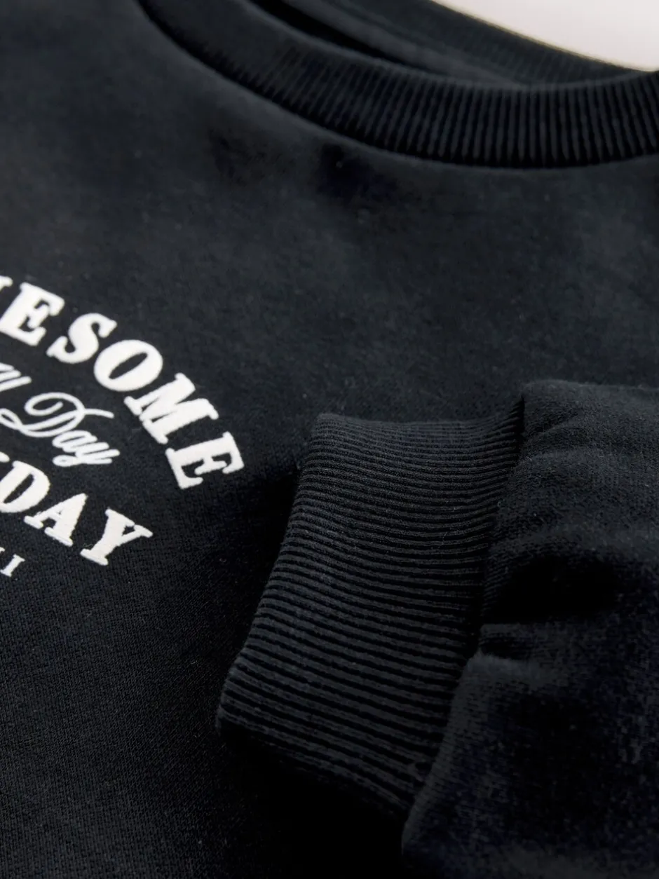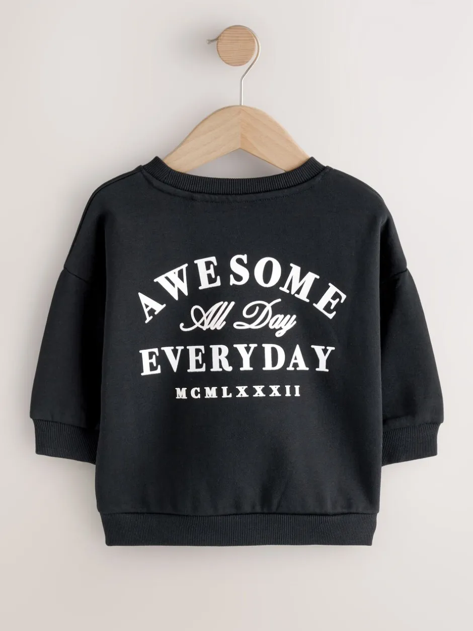 Next – Sweat-shirt en jersey à col rond imprimé au dos (3mois7ans) Noir Super Everyday Sale