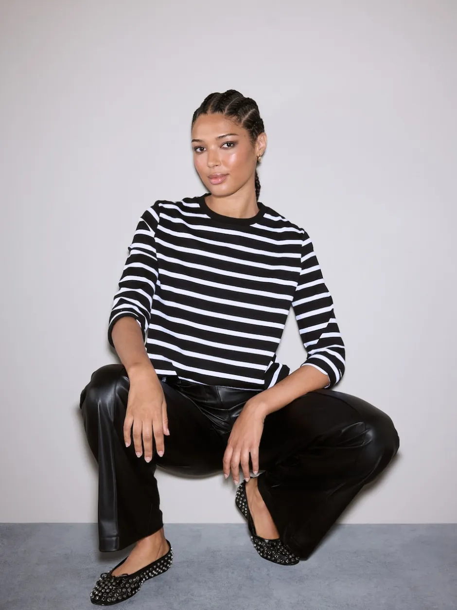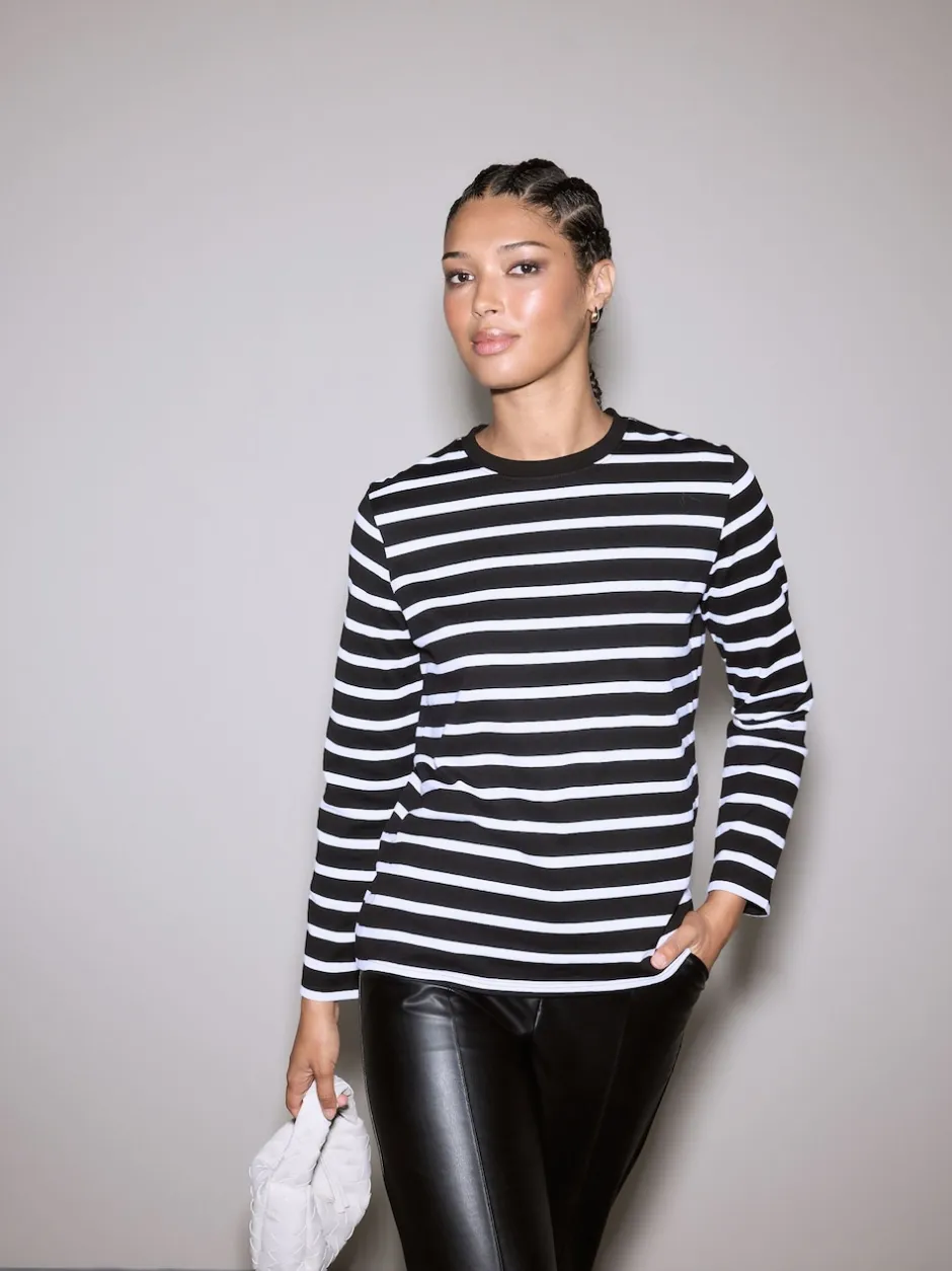 Next – T-shirt manches longues Col rond épais Bande noire/blanche Outlet