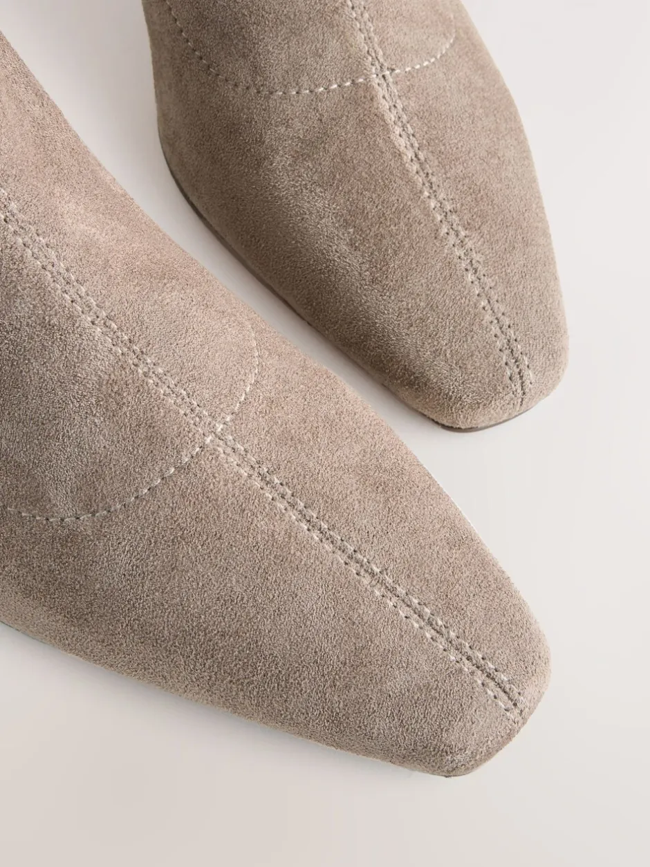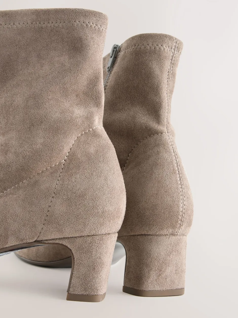 Next Taupe neutre – Bottes chaussettes à talon bloc et bout ciselé Clearance