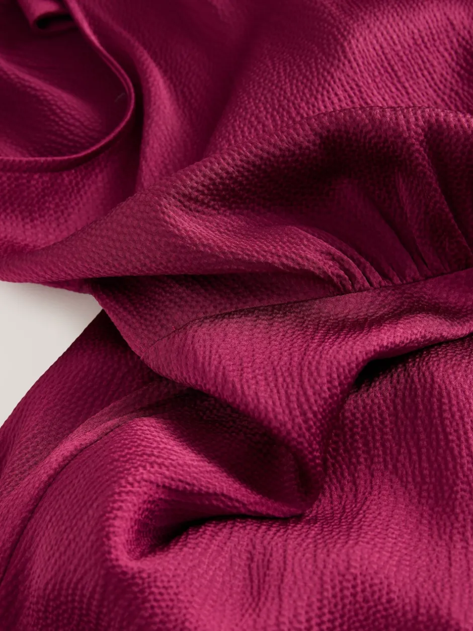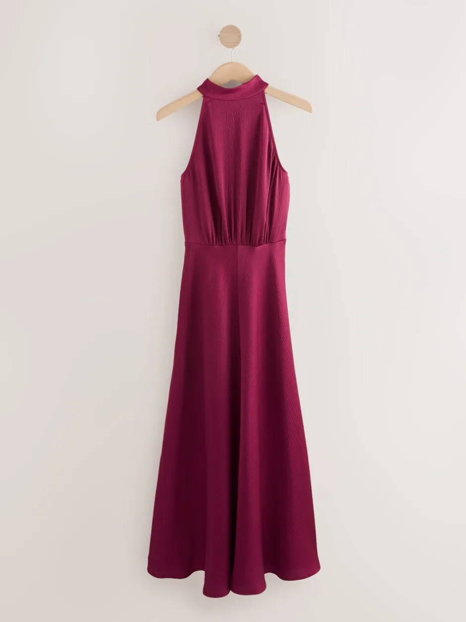 Next – Texture Satin Licol Sans manches Mi-long Robe Rouge bordeaux Hot