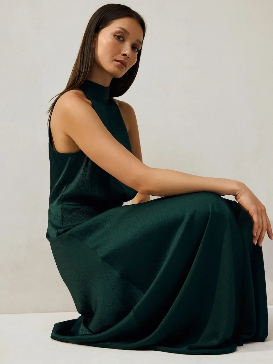 Next – Texture Satin Licol Sans manches Mi-long Robe Vert émeraude