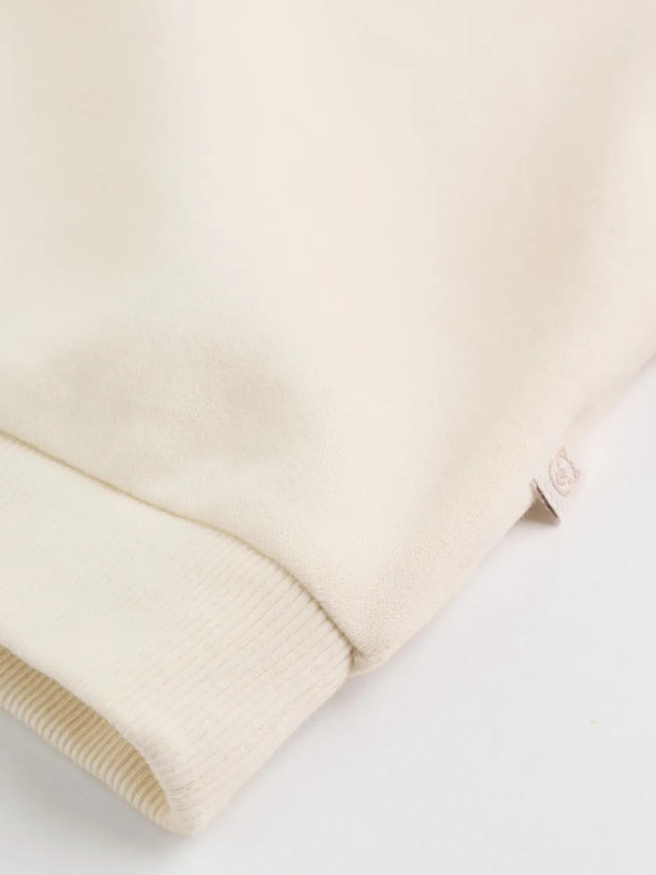 Lavable en machine. Chandail 82% coton, 18% polyester recyclé. Pantalons 100% Coton. Avertissement : tenir à l’écart du feu et des flammes.