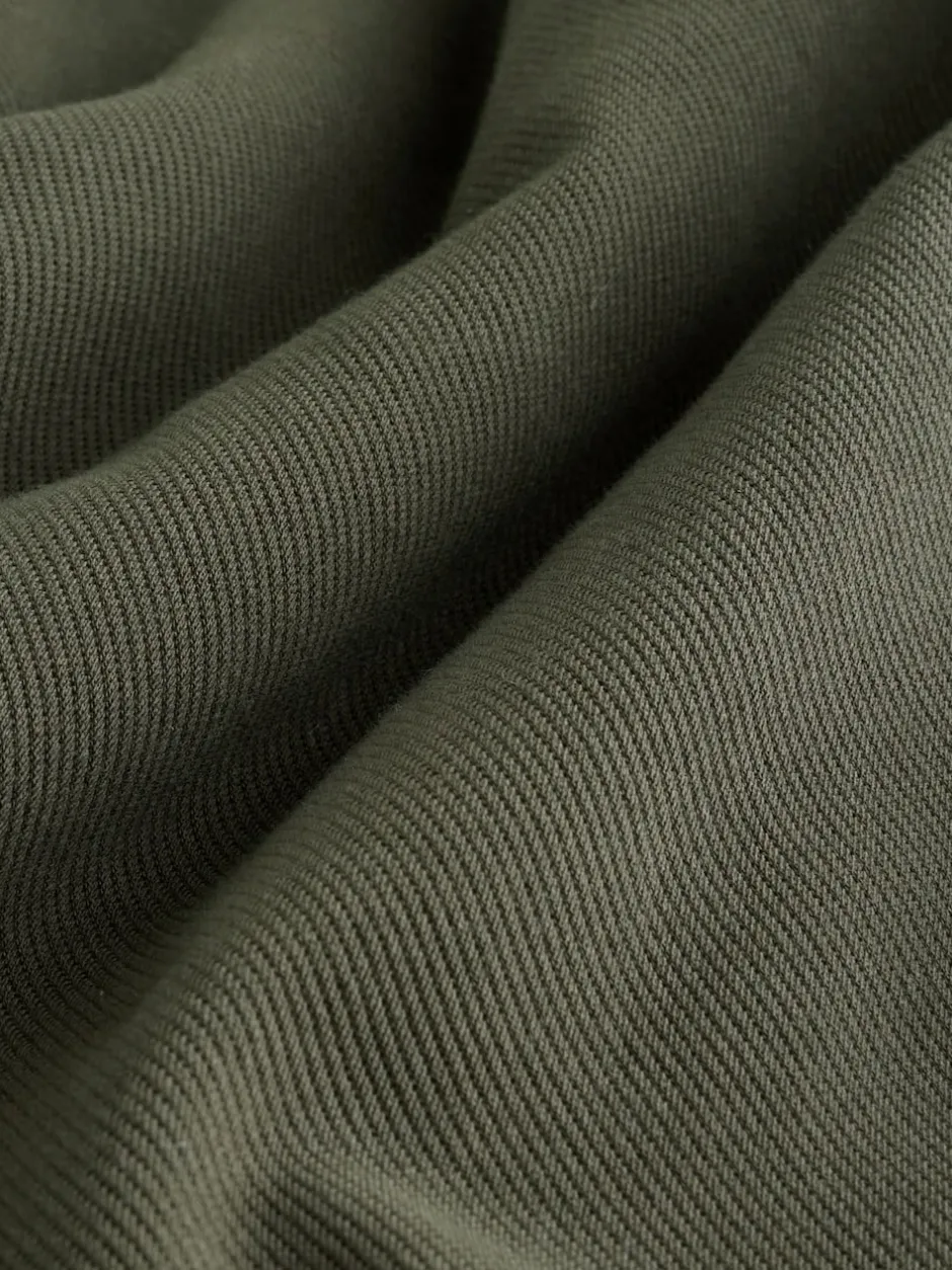 Lavable en machine. Principalement 55% coton, 42% polyester recyclé, 3% élasthanne. Doublure 100% polyester recyclé.