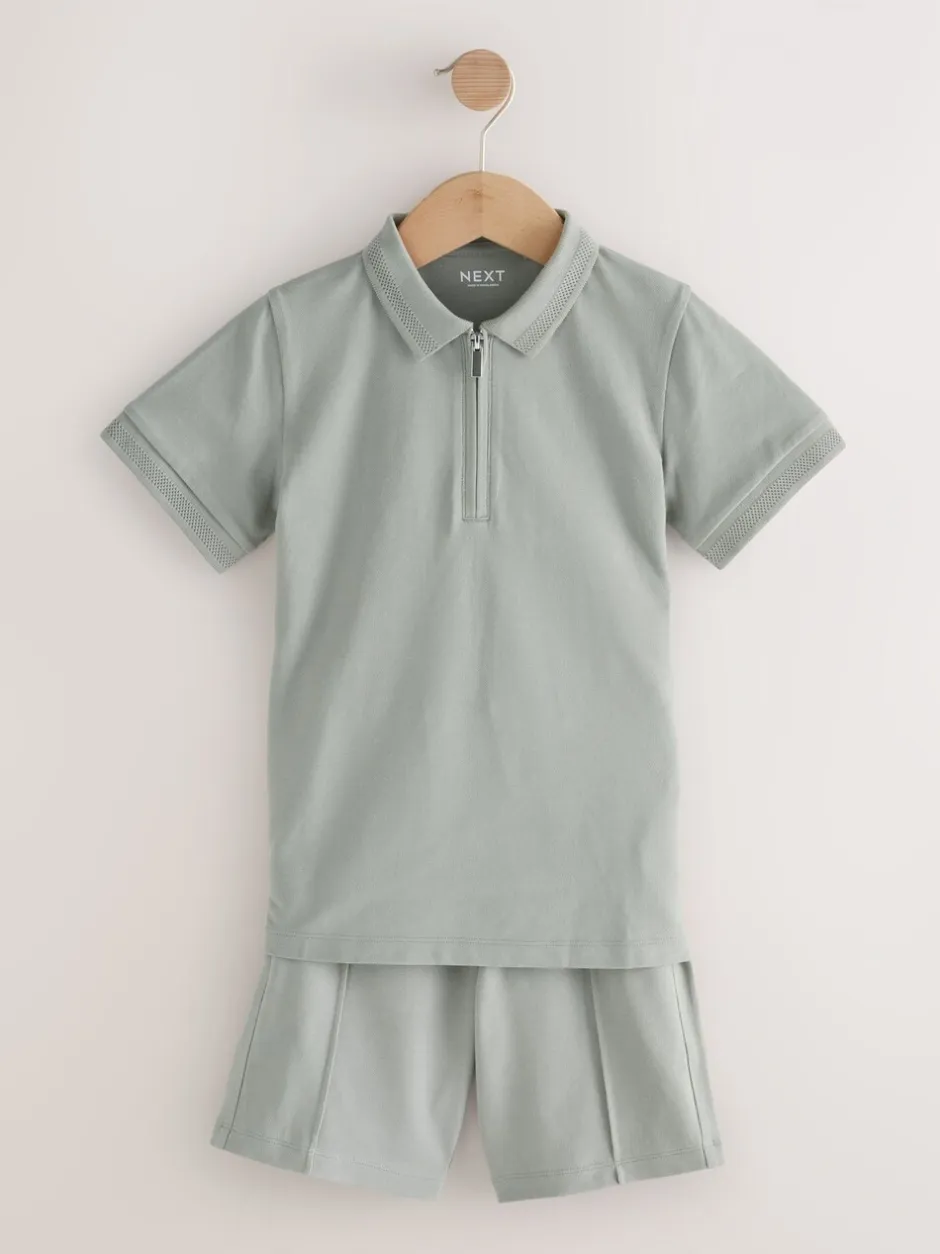 Lavable en machine. Polo et short 95% coton, 5% élasthanne.