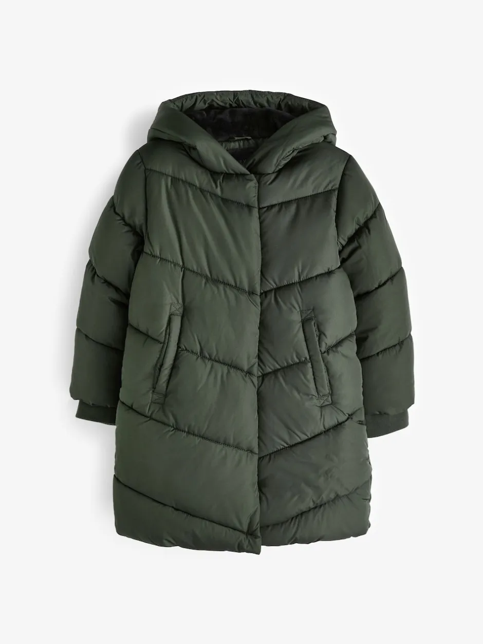 Next Vert kaki – Résistant à la douche Faux Fur Lined À capuche Doudounes (3-16yrs)
