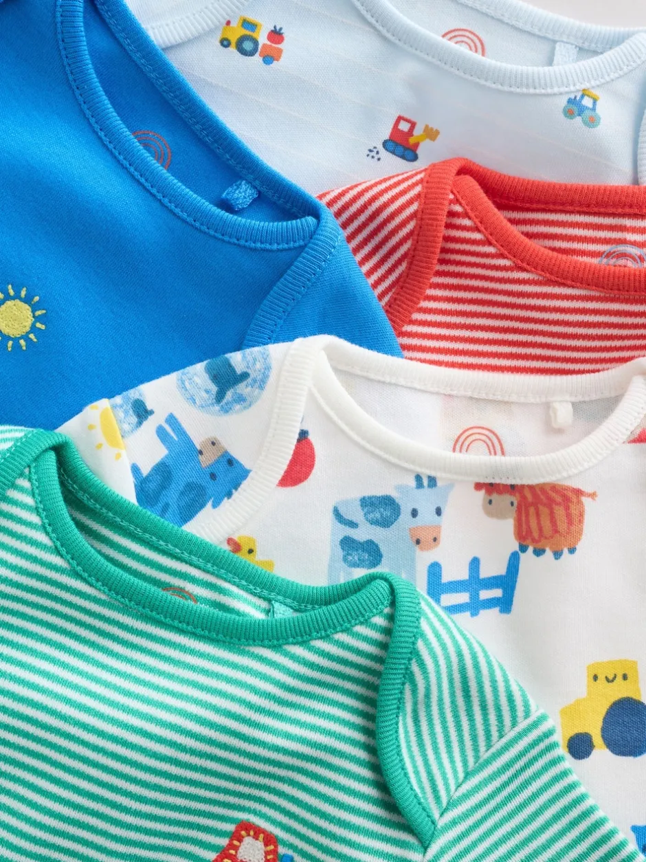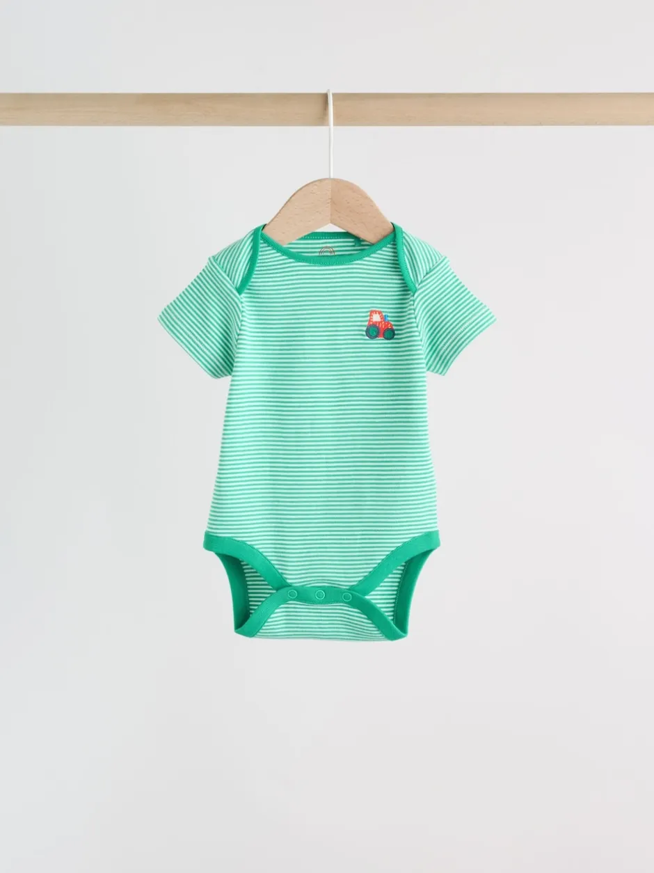 Next Vert motif ferme – Lot de 5 bodies bébé à manches courtes