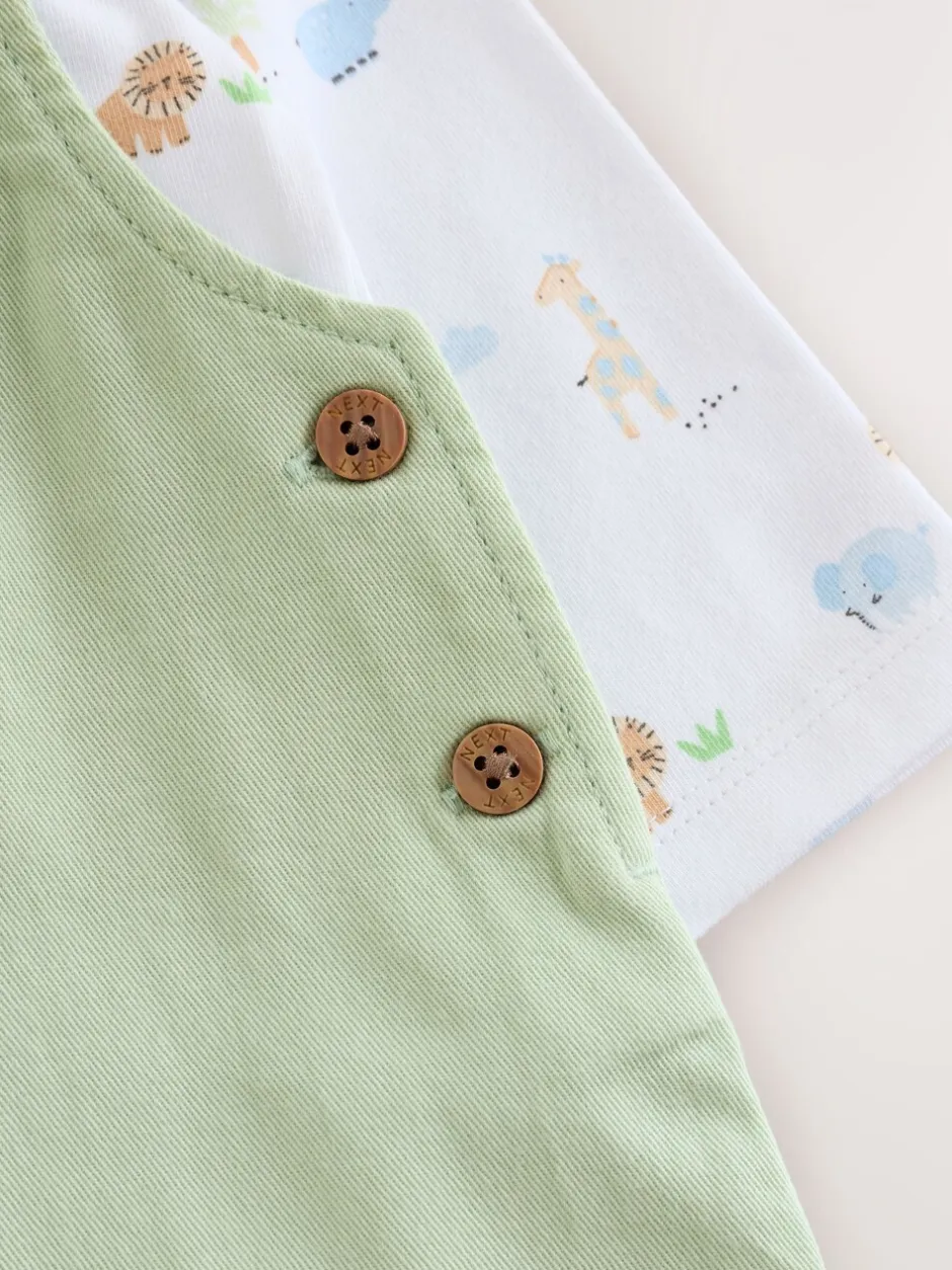 Next Vert motif safari Animal – Ensemble salopette et body en sergé pour bébé (0mths-2yrs) Outlet