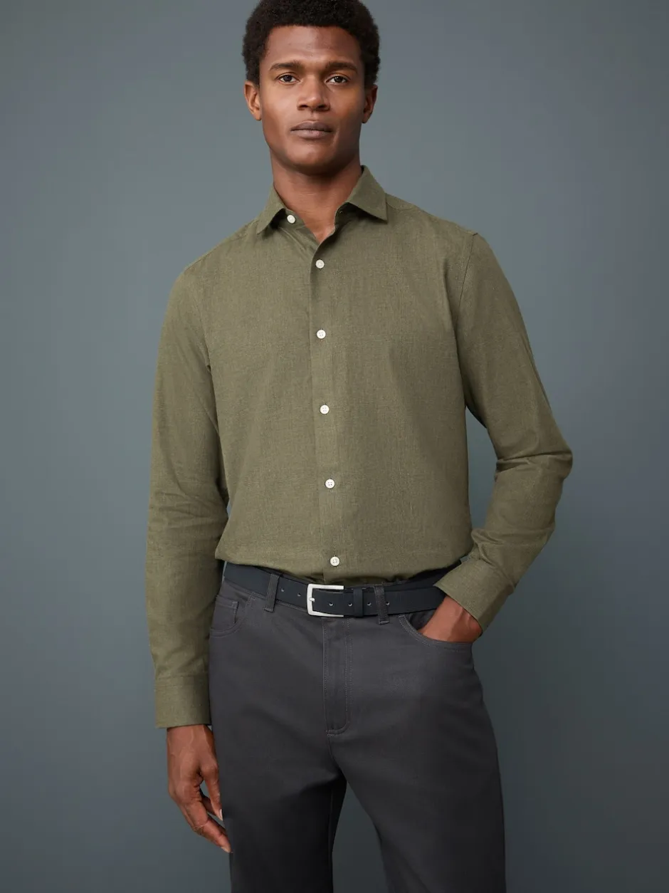 Next Vert olive – Chemise élégante douce au toucher à manches longues Outlet