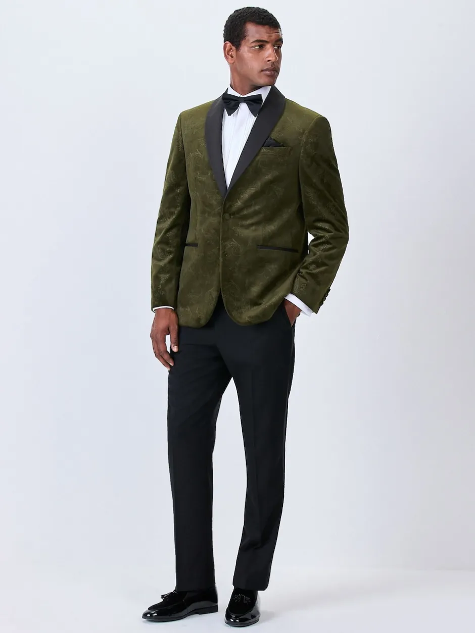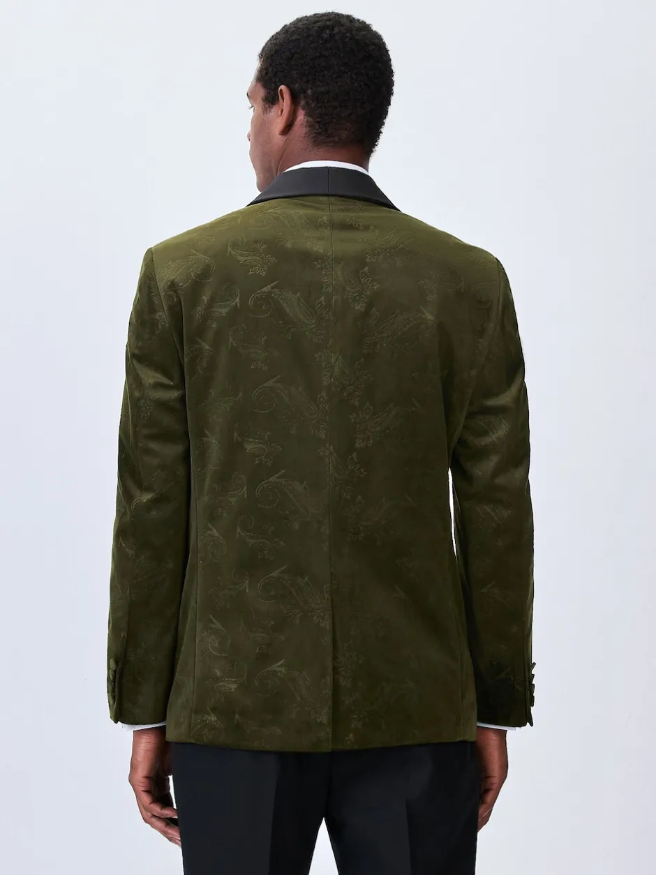 Next Vert olive motif paisley – Ajustement régulier – Blazer en velours à motifs Outlet