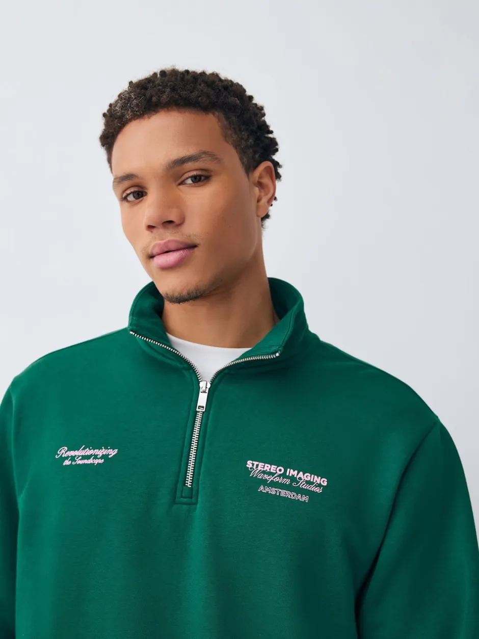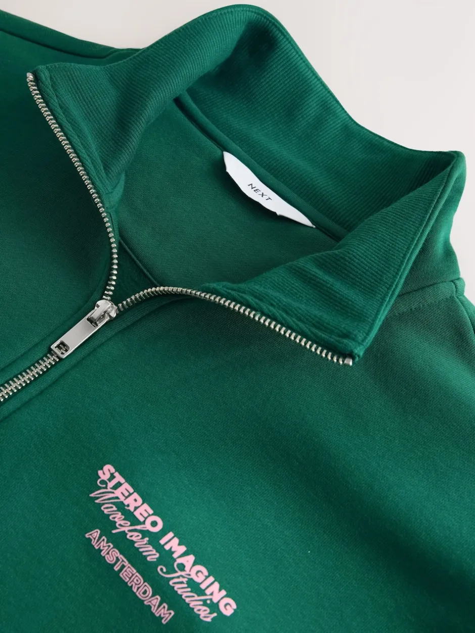 Next Vert – Sweat-shirt à col zippé à imprimé graphique simple Best