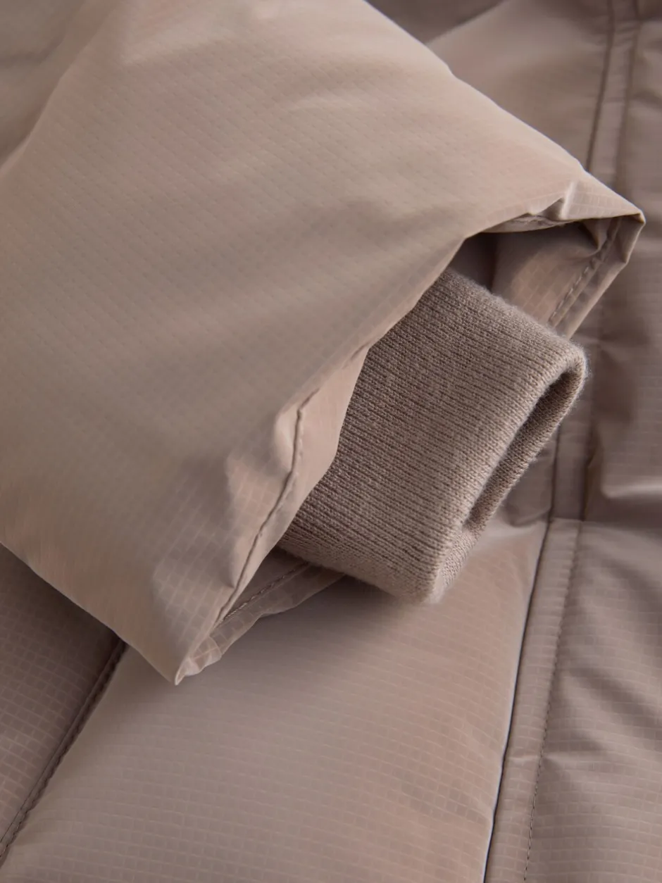 Lavable en machine. Principal 100% Polyester recyclé avec enduction PU. Doublure 100% polyester recyclé. Ouate 100% Polyester recyclé.