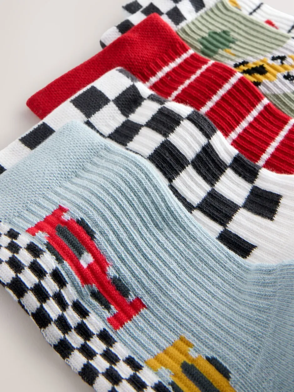 Next Voitures de course rouge/blanc – Semelle intérieure coussinée Chaussettes côtelées en coton riche 5 Pack Outlet