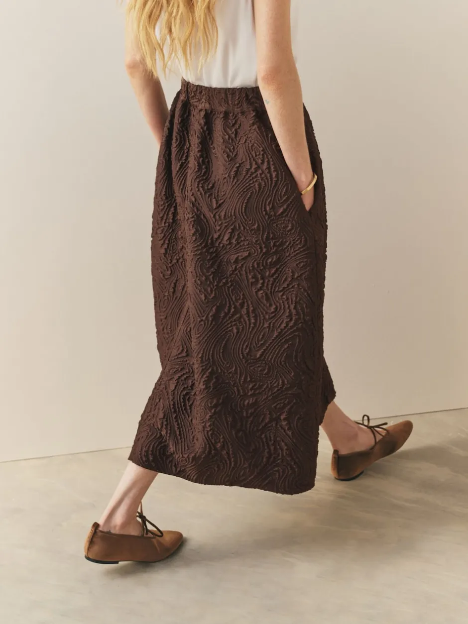 Nothing Ordinary Marron chocolat – Jupe mi-longue en jacquard Two Ordinary Volume New