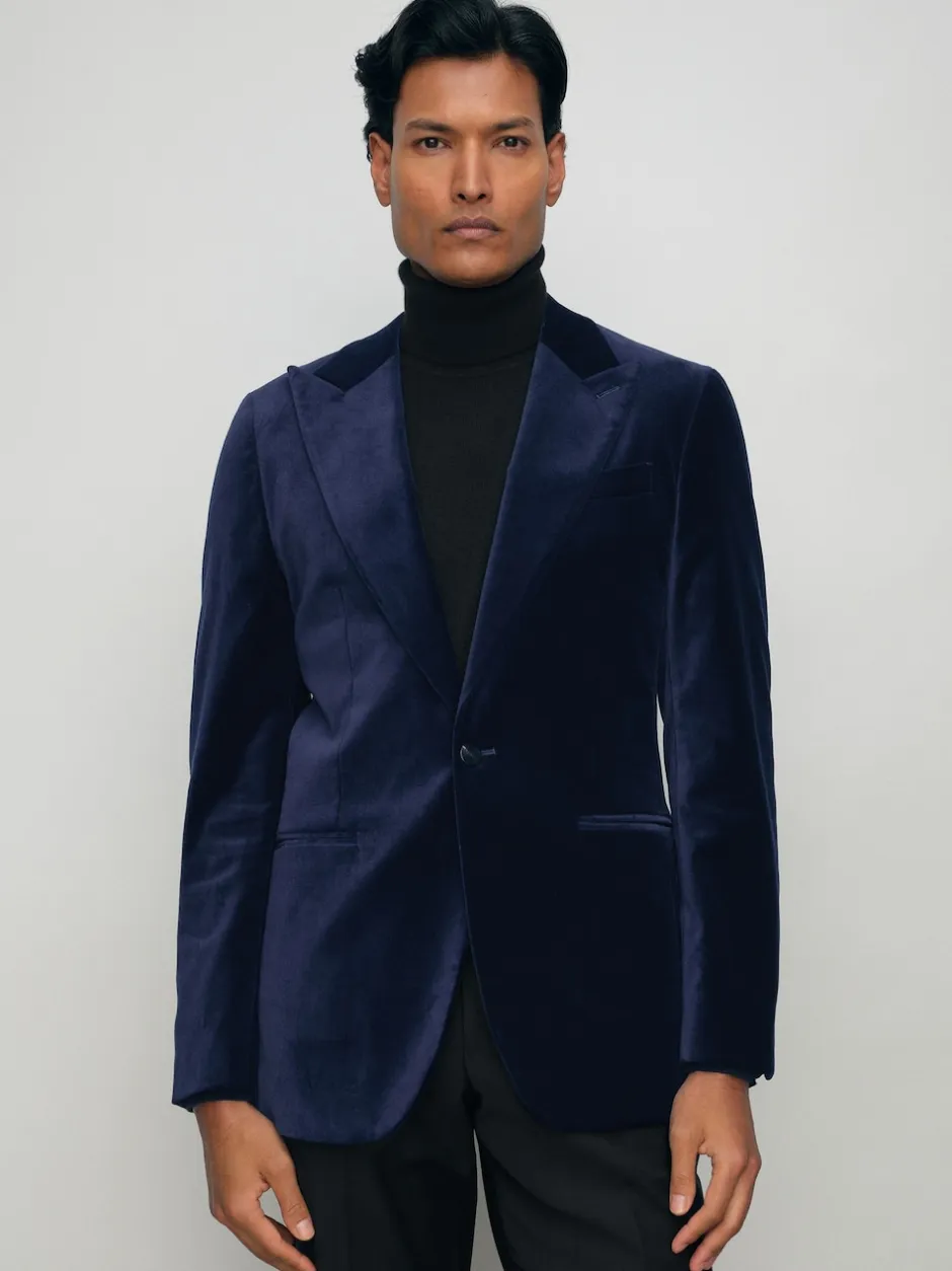 Reiss bleu vif – Apsara Blazer en velours à boutonnage simple habillé New