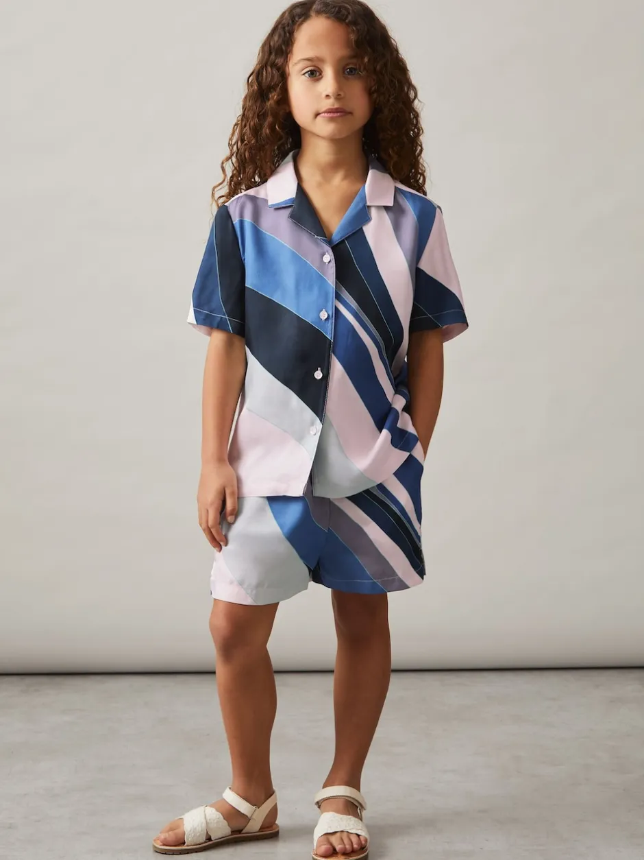Reiss Impression bleue – Tommi Chemises à col cubain imprimé Sale