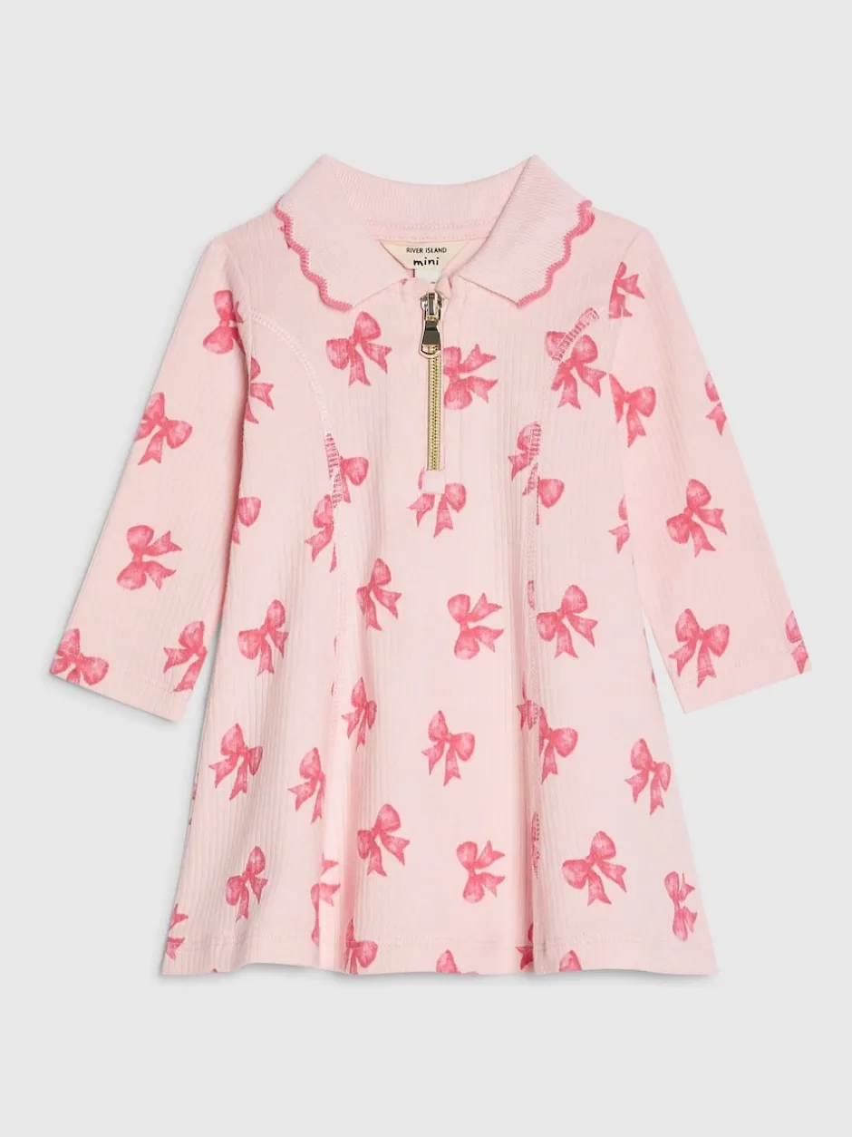 River Island Robe côtelée à manches longues et col nœud Clearance