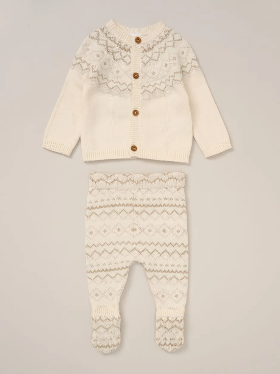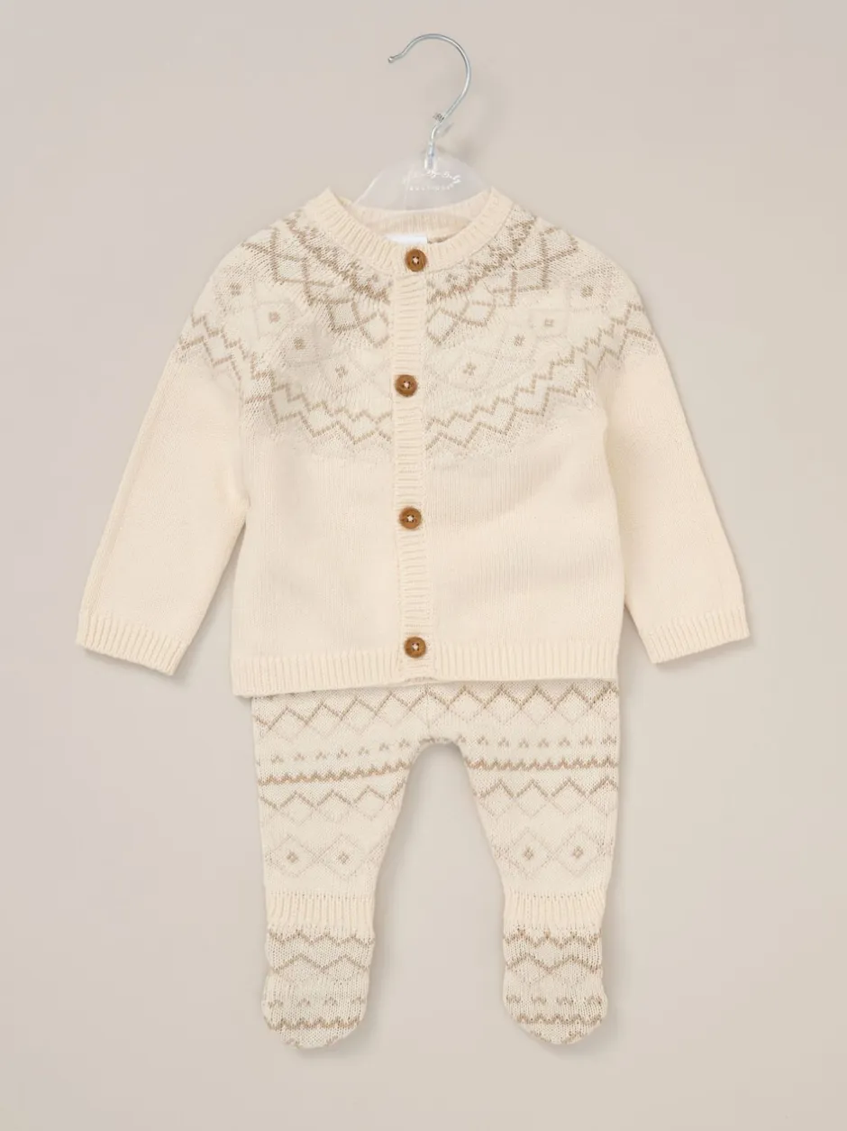 Rock-A-Bye Baby Boutique Ensemble Cardigans blanc et Pantalons à pieds en maille à Motif Fair Isle Hot