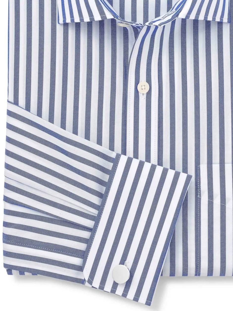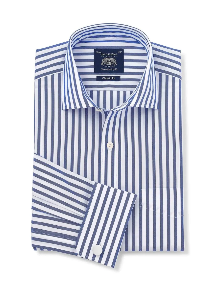 Savile Row Company Chemise habillée en coton rayé classique à double poignet Clearance