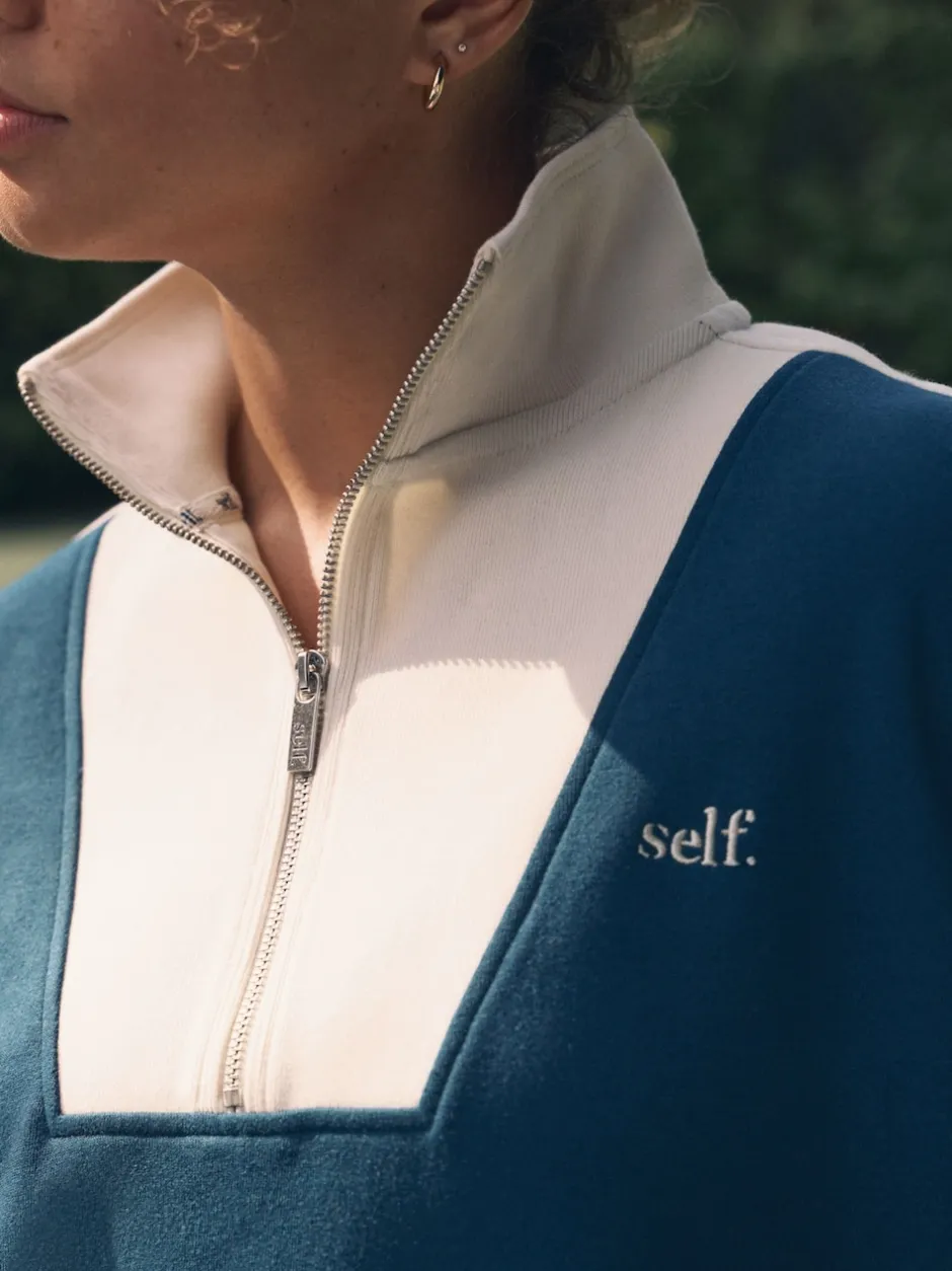 self. Bleu de sarcelle – Sweat à col zippé Outlet