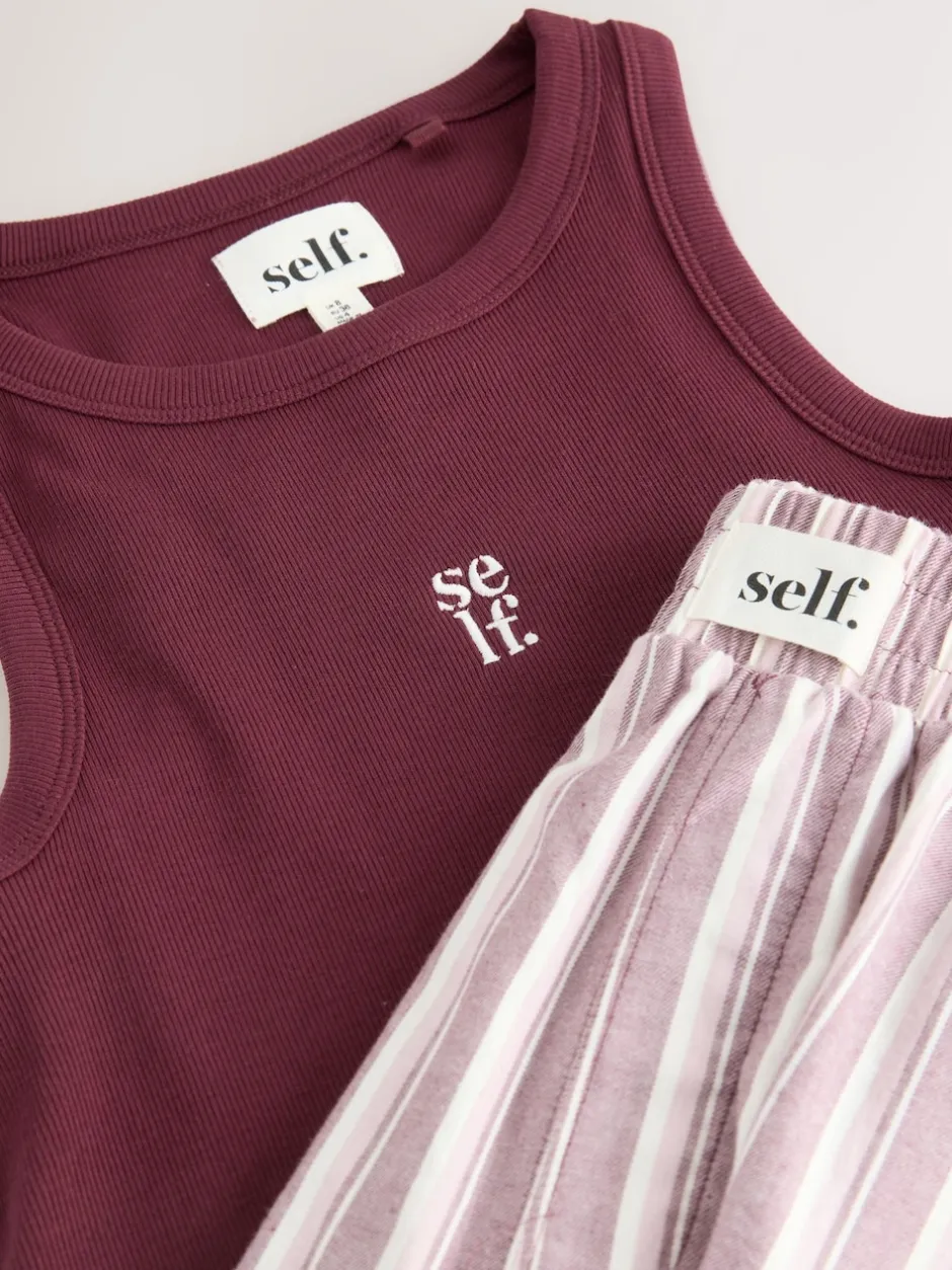 self. soi-même. Ensemble pyjama long et débardeur côtelé Discount