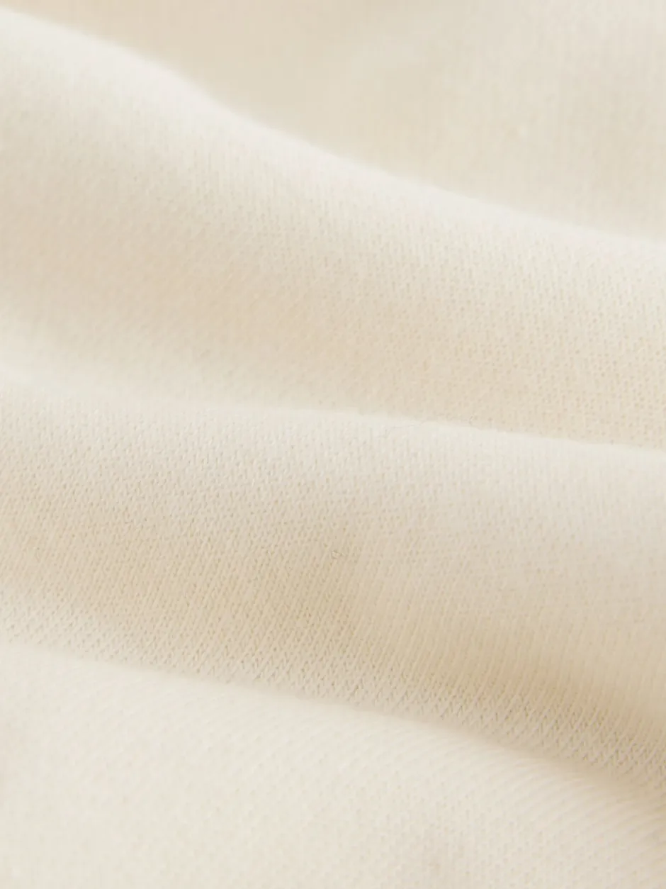 Lavable en machine. Principalement 55% coton, 45% polyester recyclé. Côte 58% coton, 39% polyester recyclé, 3% élasthanne. Avertissement : tenir à l’écart du feu et des flammes.