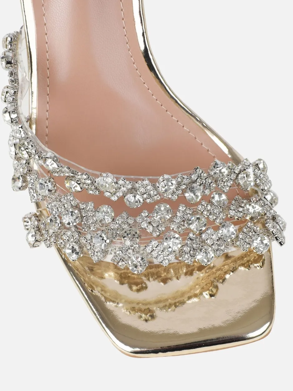 Simmi London Or – Mules à talons milieu en diamant blush Online